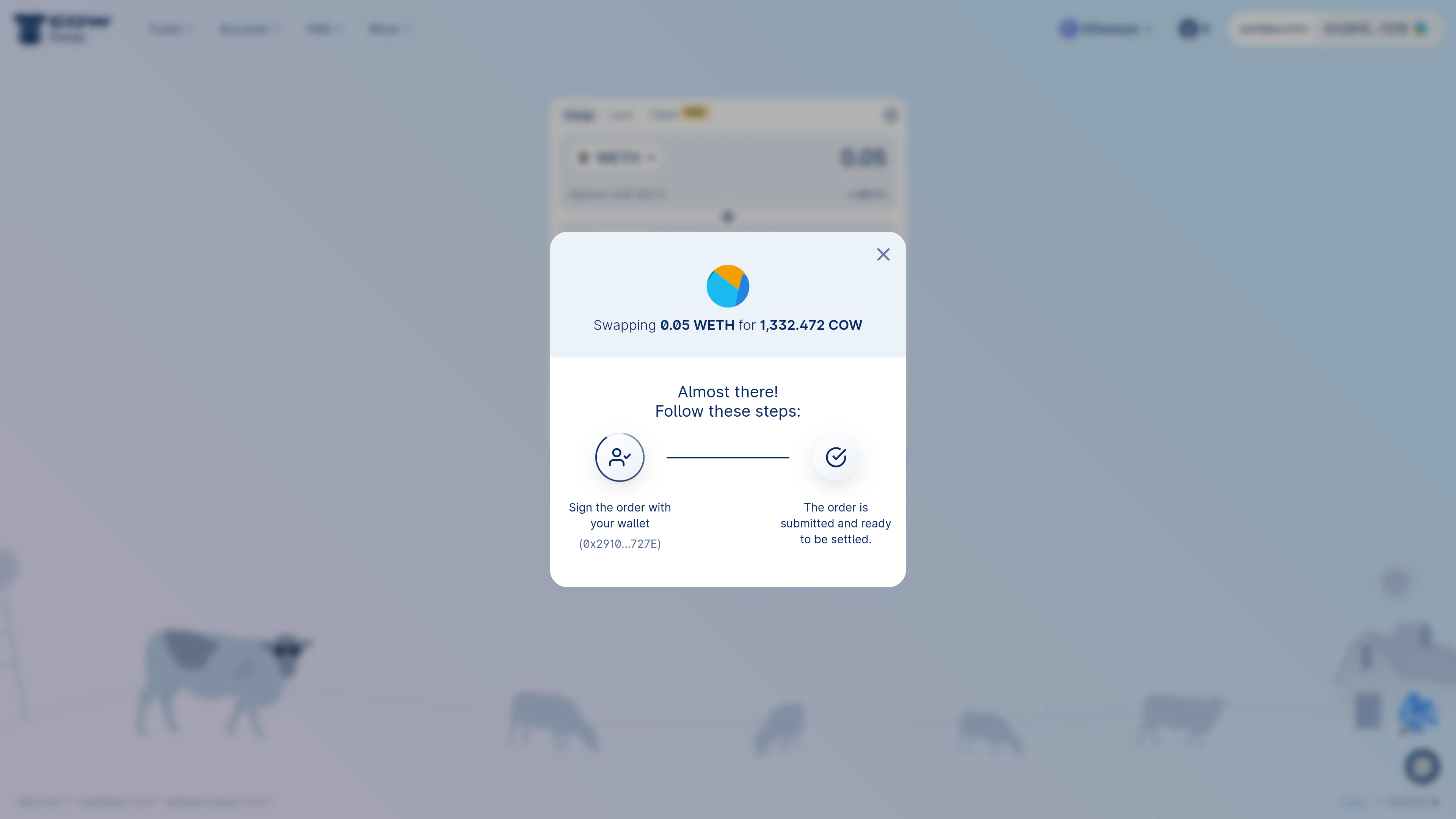 Your order will be in the order book and ready to be executed.- CoW Swap will automatically notify in a pop-up message once your order is executed.