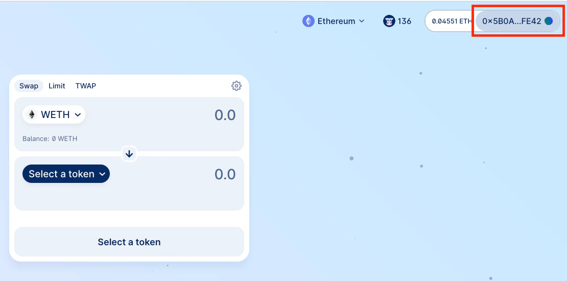 Go to CoW Swap and connect your web3 wallet.If you don’t have a web3 wallet yet, you can easily get one! Here are some suggestions: